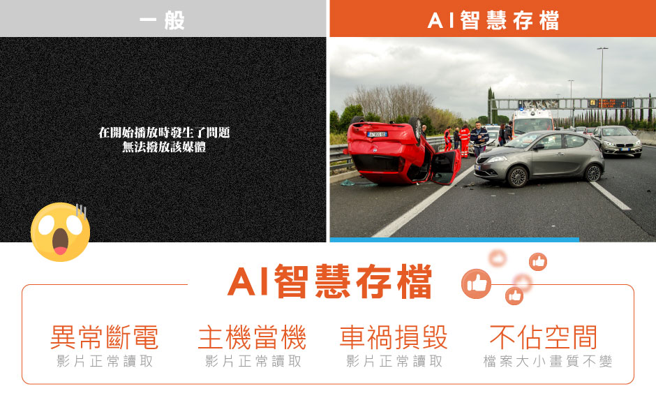 前後鏡獨立雙分離 + 2K清晰大視野 + WiFi傳輸,解決傳統後視鏡視野盲區,2K後視清晰大視野,隨時掌握後方來車狀況,即時前後錄影,完整記錄你所到之處,內建WiFi傳輸即時瀏覽、支援OTA無線更新,且搭載最新AI智慧存檔技術,斷電秒存不漏檔,遇到任何狀況都完整保留影片,給你真正的「行車安全感」。
